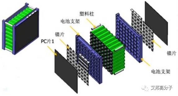 支架、框架、端板,可选择材料有阻燃PPEPC/ABS合金阻燃增强PA。PPE密度1.10g/cm³,PC/ABS密度1.2g/cm³,增强阻燃PA1.58g/cm³,从减重角度看主要选择阻燃PPE。且PC的耐化学性相对差一点,而锂电池内有电解液,那么PC容易出现开裂状况,所以有一部分企业是选用PPE的。美聚高专业/注研发动力电池专用PPO材料,13790723572